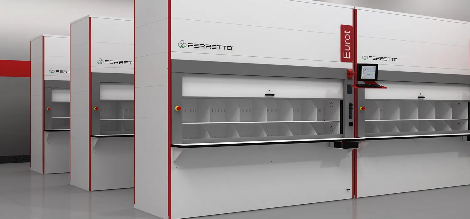 Eurot è un sistema automatico di stoccaggio a piani rotanti; è la soluzione ideale quando lo spazio disponibile è limitato e l’altezza al soffitto è inferiore o uguale a 4 metri, gli articoli da stoccare sono leggeri e di dimensioni e peso omogenee e il materiale non richiede assistenza al sollevamento per essere movimentato in sicurezza. I piani rotanti seguono sempre il percorso più breve garantendo la massima velocità nelle operazioni di prelievo e deposito. La sua versatilità lo rende il sistema di stoccaggio automatico ideale sia per uffici che per le industrie.